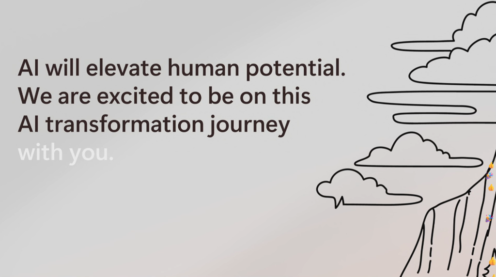 AIは人間の可能性を高める、一緒にAI変革の旅に出ましょう、という感じのDay 1 Keynoteでした。![]()