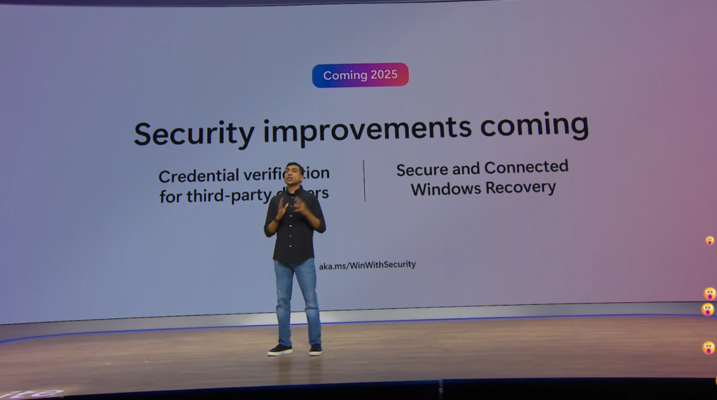 Windows周りの詳細。Widnows HelloでのPaskey対応、Administrator Protection。管理タスク実行時に管理者の承認を要求させることでWindowsを保護。Windows HotpatchもWindows 11やWindows 365で対応。Copilot+PCs関連もいろいろ。![]()