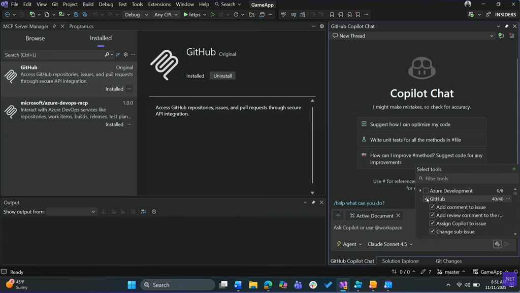 ざっくりとAgentとは?という話から始まってAgentを作るためのフレームワークとしてSemantic KernelやAutoGenがありましたが統括して扱えるMicrosoft Agent Frameworkを作って今はPreview中。MCP対応もVisual StudioやCopilotなどはもちろんフレームワークを使って自分のアプリ内に組み込むことも、MCP C# SDK(Preview)を使ってMCP Serverのほうを作るのもOKに。
