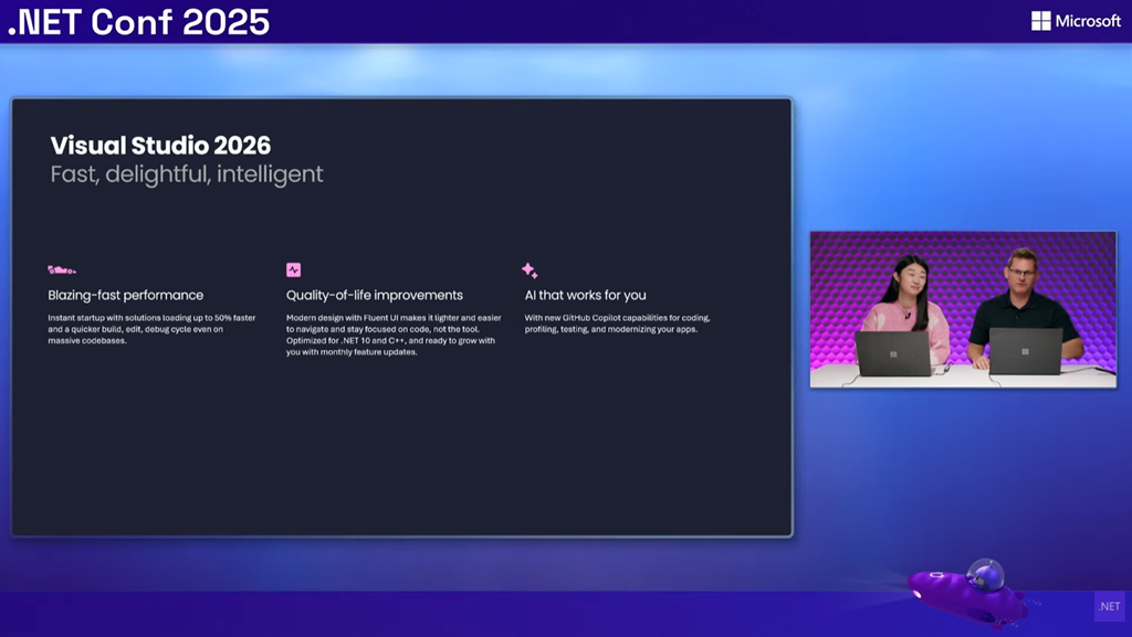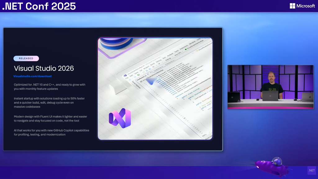 最後はVisual Studioの話。IDEをプラットフォームから切り離したいみたい。というのはさておきまずはVisual Studio 2026リリースです。