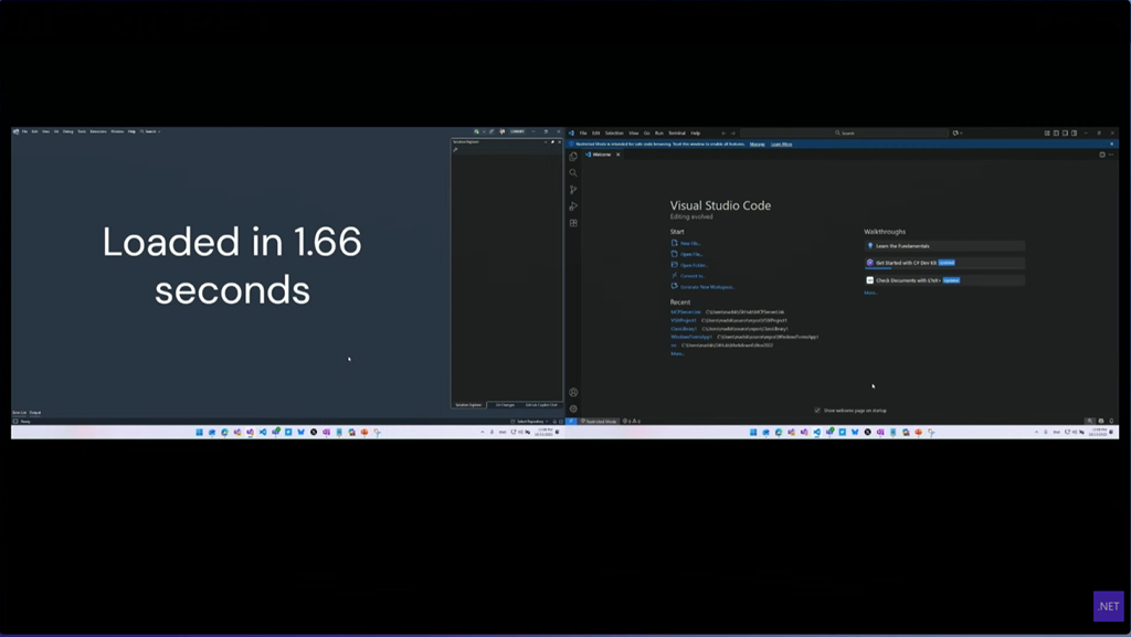 ソリューションを読み込む速度も44%速く。複数CPUコアで並列化とかも行ってきたので起動時だいぶ速く準備ができるようになった。(だいたいUIスレッドでブロックされてた処理をバックグラウンドに回したとかっぽいけど)![]()