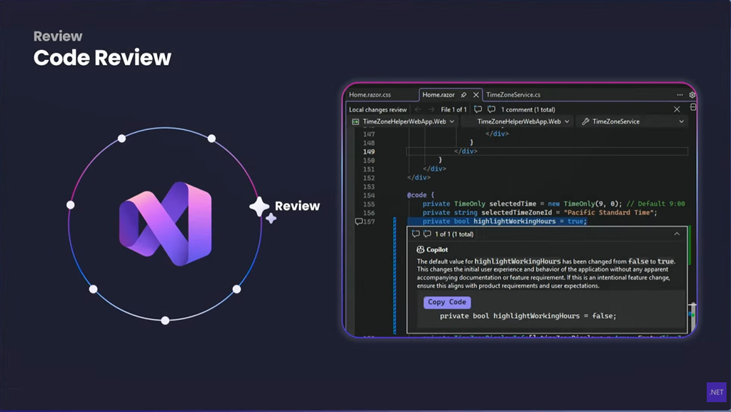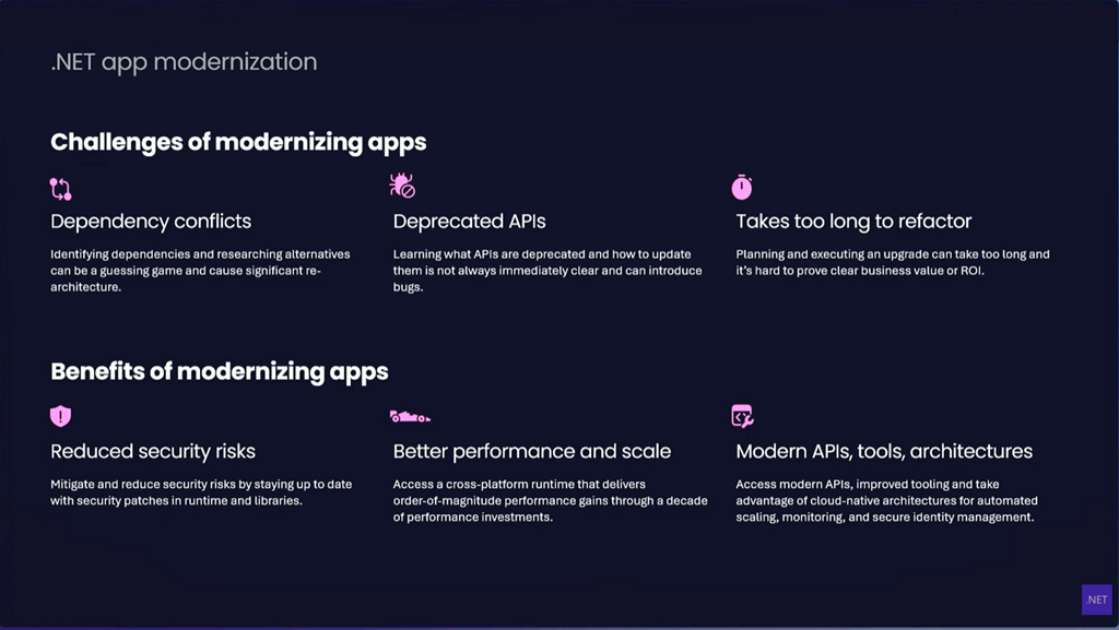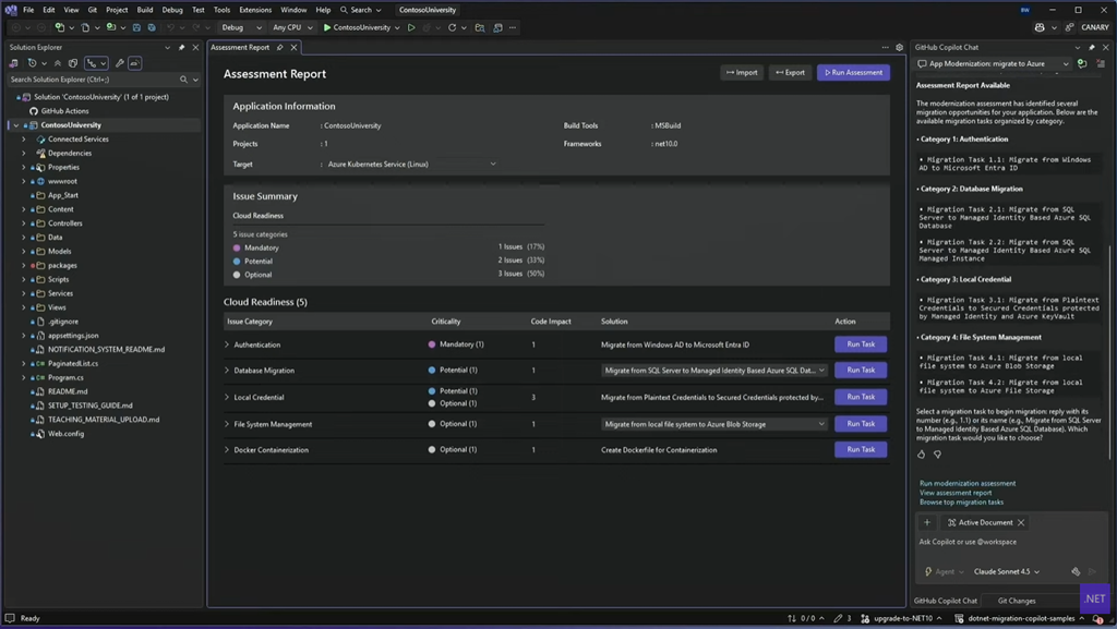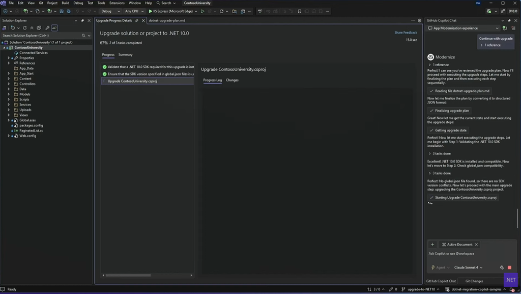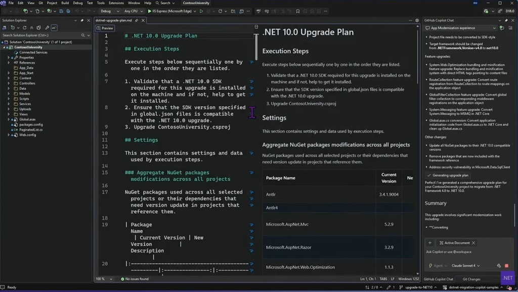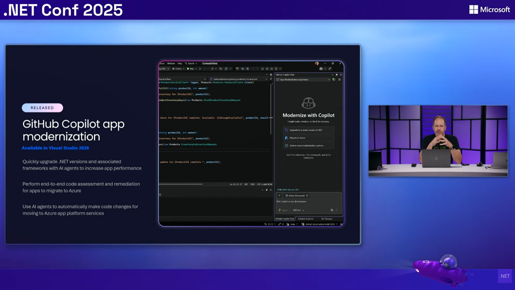 次はモダナイゼーションな話。Visual StudioのGitHub Copilotと一緒にアップグレードステップをガイドできます。