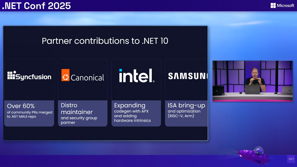 .NET 10に協力してくれたパートナーやコントリビューターたち。(企業はIBMが画像から抜けてしまった)![]()
