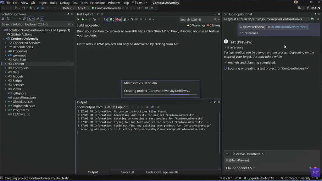 モダナイズ関連のデモ。GitHub Copilotを使ってプロジェクトを .NET 10へアップグレードさせます。テストプロジェクトもCopilotに作ってもらって実行したり。テストが失敗してもCopilotとやり取りして修正などもOK。![]()