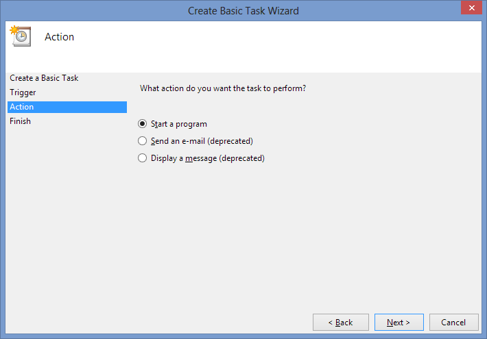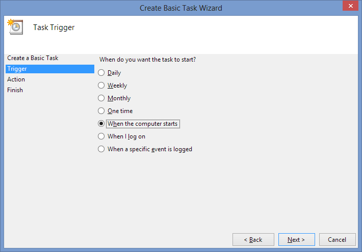タスクの起動タイミングはコンピューターの起動時を選択します。