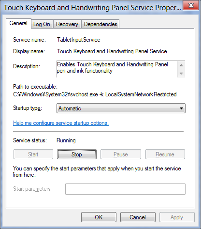 でまぁいろいろ見てると「Touch Keyboard and Handwriting Panel Service」なるサービスを再起動すればタッチキーボードがリセットされるみたいで、うまく表示されるようになりましたとさ。