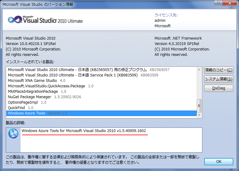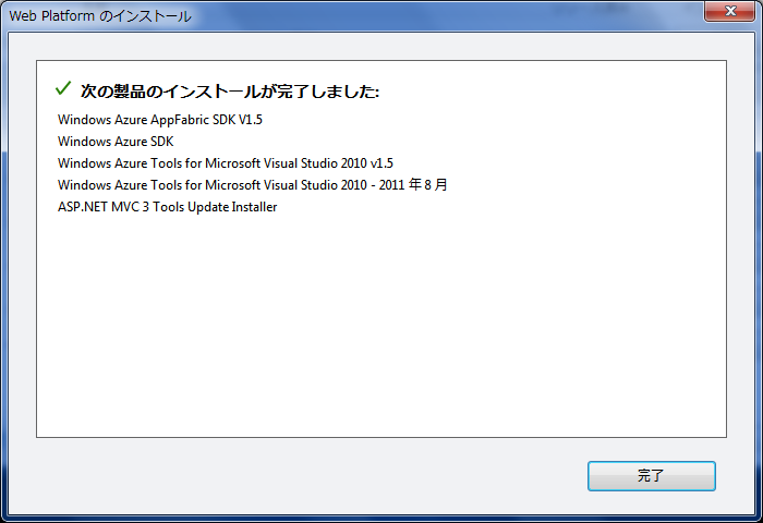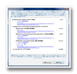 でインストールするとAzure SDK 1.5とAzure AppFabric SDK 1.5、Azure Tools for VSが入ります。