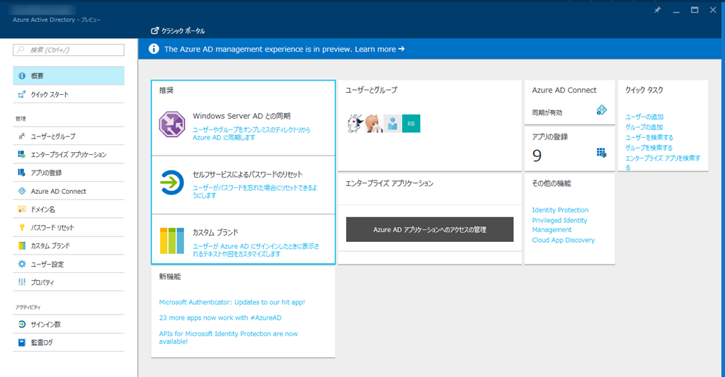 苦節n年(?)、やっとこさAzrue PortalでAzure Active Directoryが管理できるようになりました。クラシックポータルを強要されてた人もこれでオサラバできそうですね。