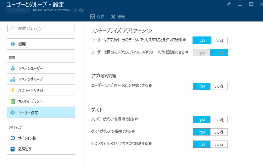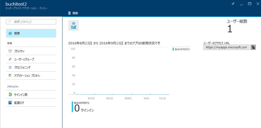 エンタープライズアプリケーション(AzureADに登録したアプリケーション)の管理も可能です。![]()
