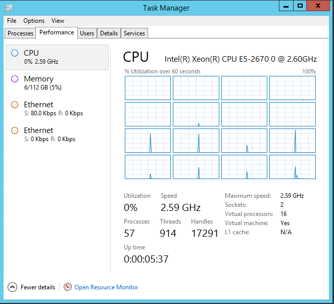16コアメモリ112GBなインスタンスです。こちらはNUMAあり(2ノード)のようです。