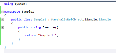 SampleAssembly = (ISample.ISample)SampleAppDomain.CreateInstanceFromAndUnwrap(AssemblyUrl, AssemblyTypeName);
