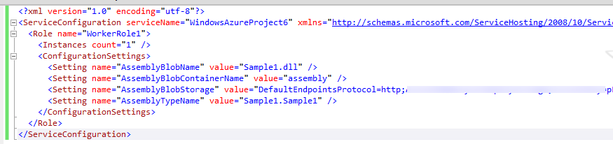 | var assemblyName = RoleEnvironment.GetConfigurationSettingValue("AssemblyBlobName"); | |