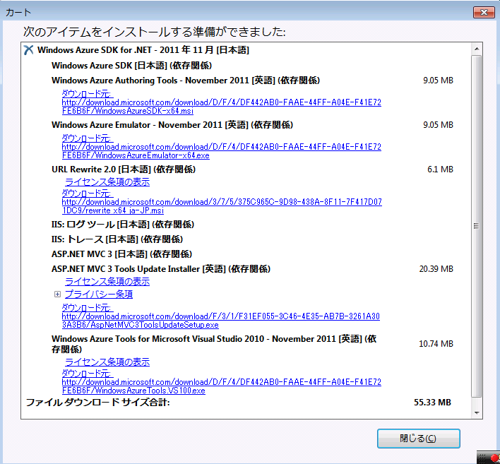 で、最後はVisual Studio用のWindows Azure Tools for Visual Studioですね。