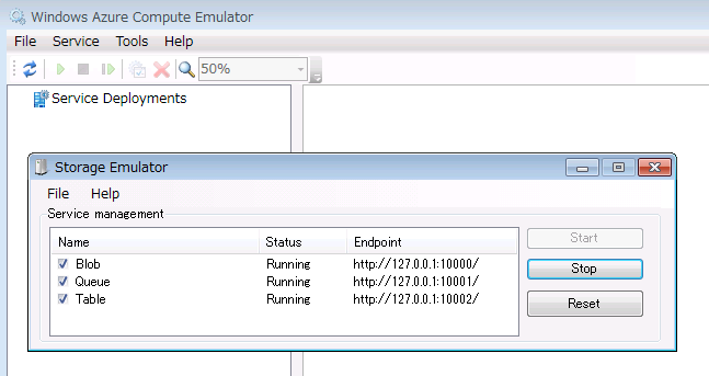 ではWindows Azure Emulatorから見てみましょう。こいつは文字通りエミュレータのようですね。