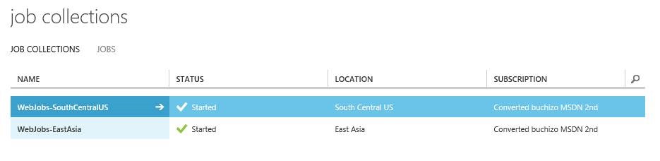 上図のように東アジアを選択して作成すると、結果的に2つのリージョンにジョブコレクションが作成されます。