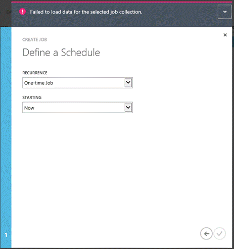 あと、リージョン選択してジョブ作成ウィザードのStep2(時間の選択など)に移る際にエラーが発生する場合があります。